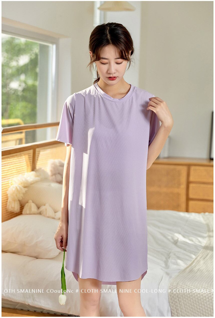 トレンド リブ 半袖Tシャツ 無地 トップス ルームウェア ワンピース ワンマイル アイスシルク