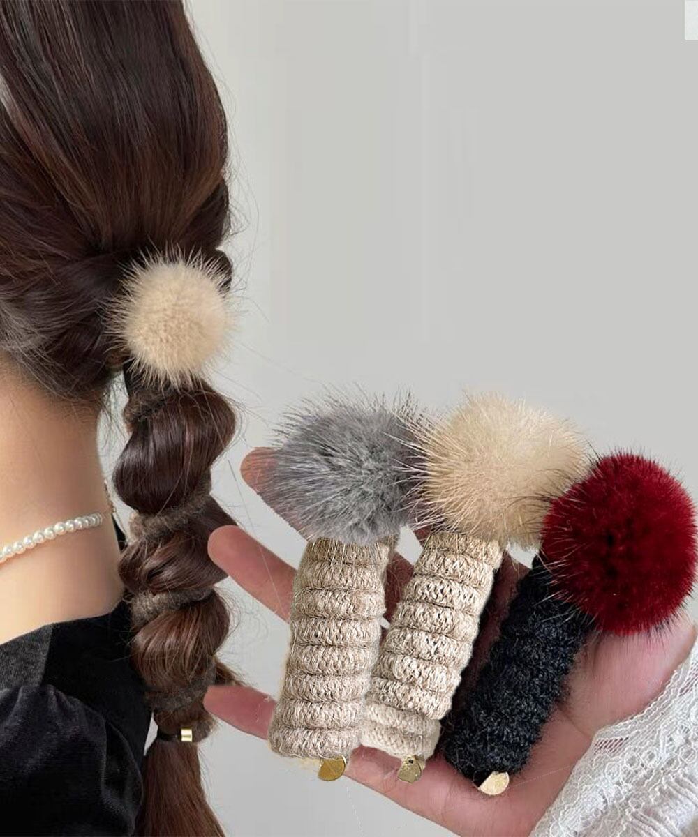 ふわふわと手触りのよいフェイクファーを使ったヘアゴムです。