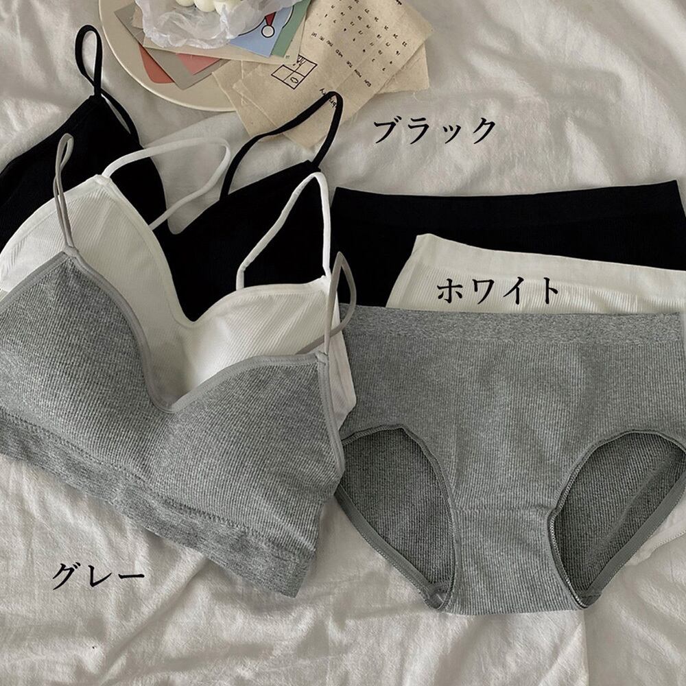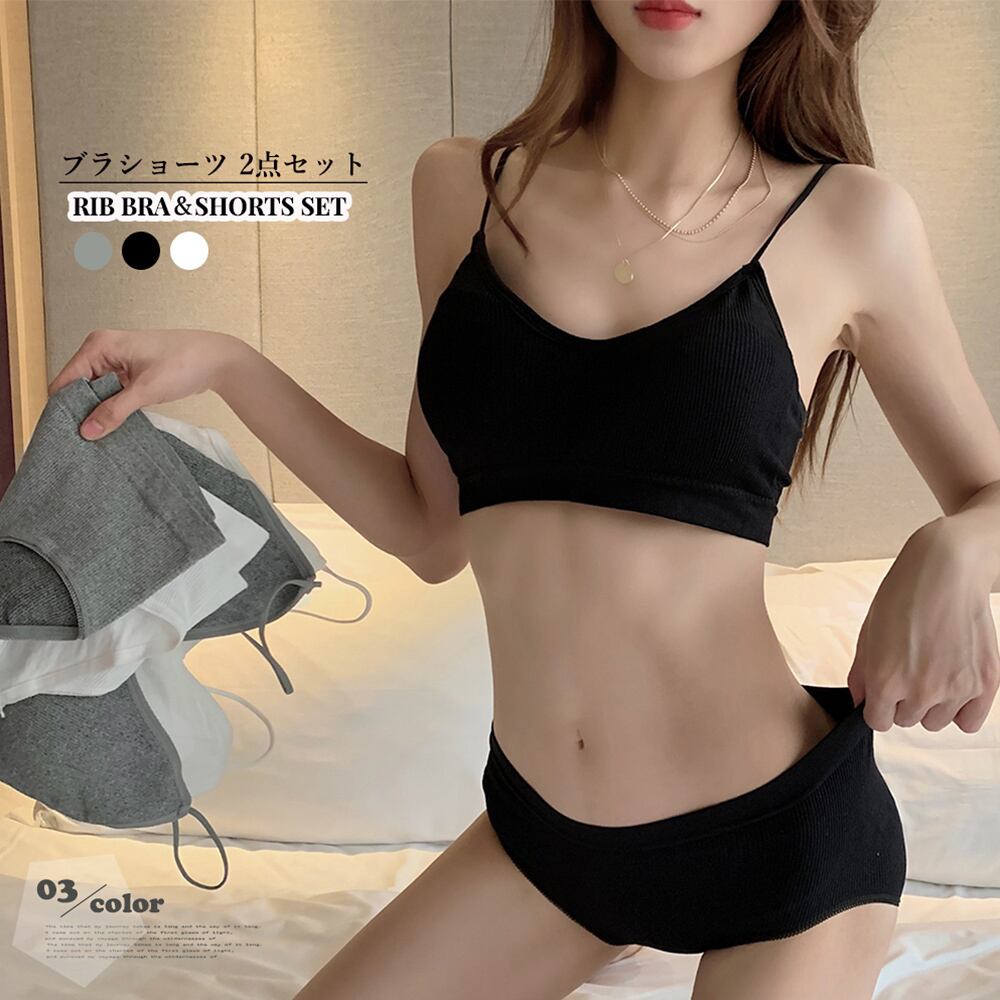 【日本倉庫即納】 リブ素材 ブラショーツ 2点セット 黒